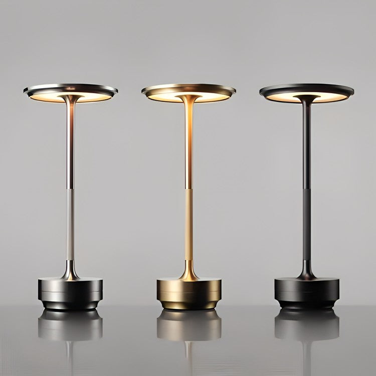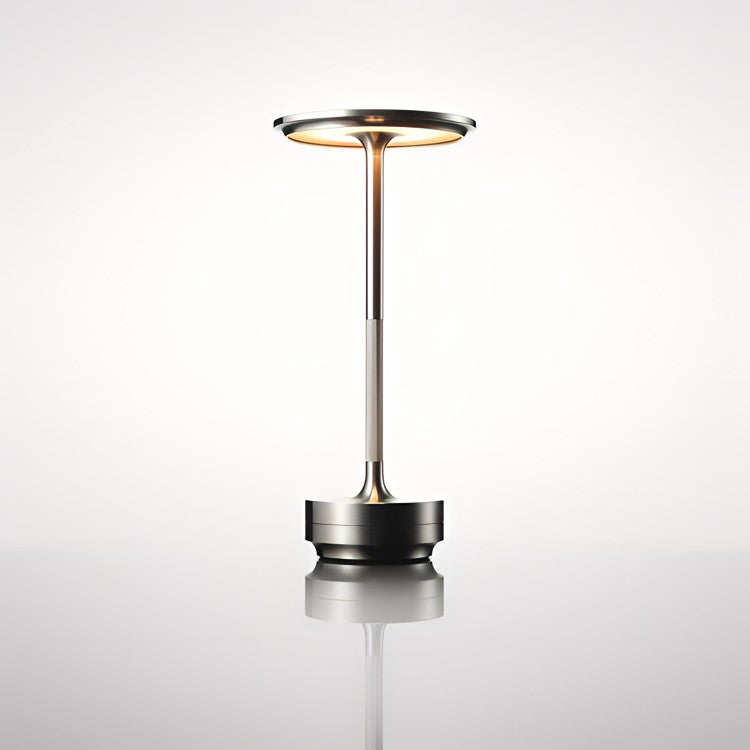 The Table Lamp features a sleek cylinder base, a slim neck, and a flat disc-shaped top, making it a perfect addition to any décor.